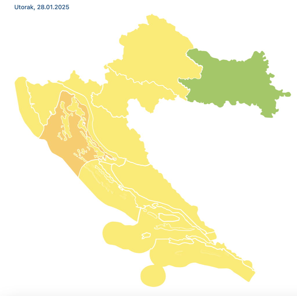 Za cijelu je Hrvatsku, osim krajnjeg istoka, danas na snazi upozorenje o potencijalno opasnom vremenu. Za našu regiju, zagrebačku, na snazi je žuto upozorenje zbog snažnih vjetrova s mjestimice olujnim udarima.