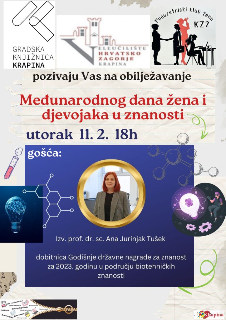 Gradska knjižnica Krapina, Veleučilište Hrvatsko zagorje Krapina i Poduzetnički klub žena KZŽ pozivaju vas na obilježavanje Međunarodnog dana žena i djevojaka u znanosti.