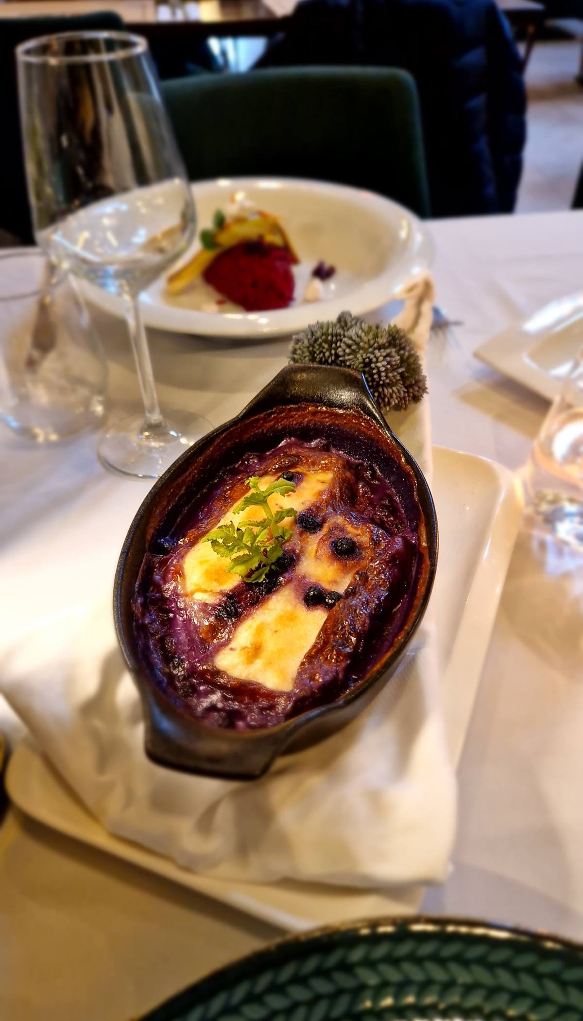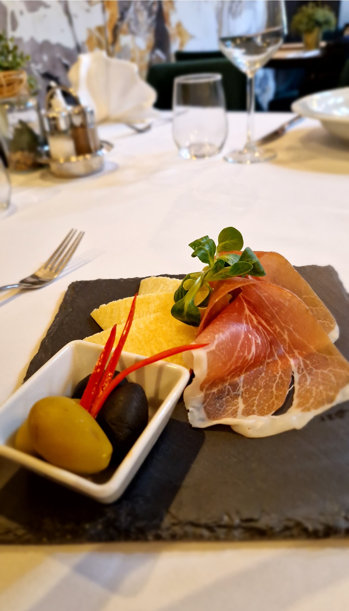 Gastronomska ponuda započinje s predjelima, a gosti mogu birati između delikatne krem juhe od celera, bogatog crnog rižota od plodova mora ili klasične plate pršuta, sira i maslina. Za glavno jelo restoran nudi tri atraktivna izbora – biftek u umaku od vina i gljiva, file lososa u panko mrvicama s tartar umakom ili pečeni poriluk te rižoto od cikle i feta sira, savršen za ljubitelje vegetarijanske kuhinje.