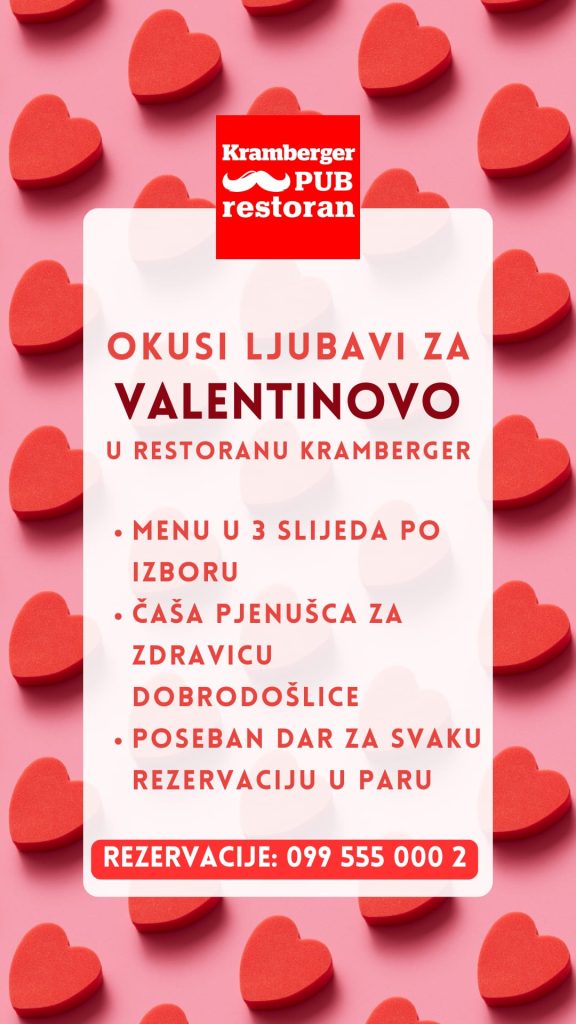 Rezervacije za Valentinovo su obavezne, a zainteresirani gosti mogu osigurati svoje mjesto OVDJE. U samo nekoliko koraka vaš stol je spreman kako bi večer puna ljubavi bila potpuna! Sve ostale informacije možete potražiti pozivom na broj 099 555 0002, odnosno slanjem e-maila na [email protected].