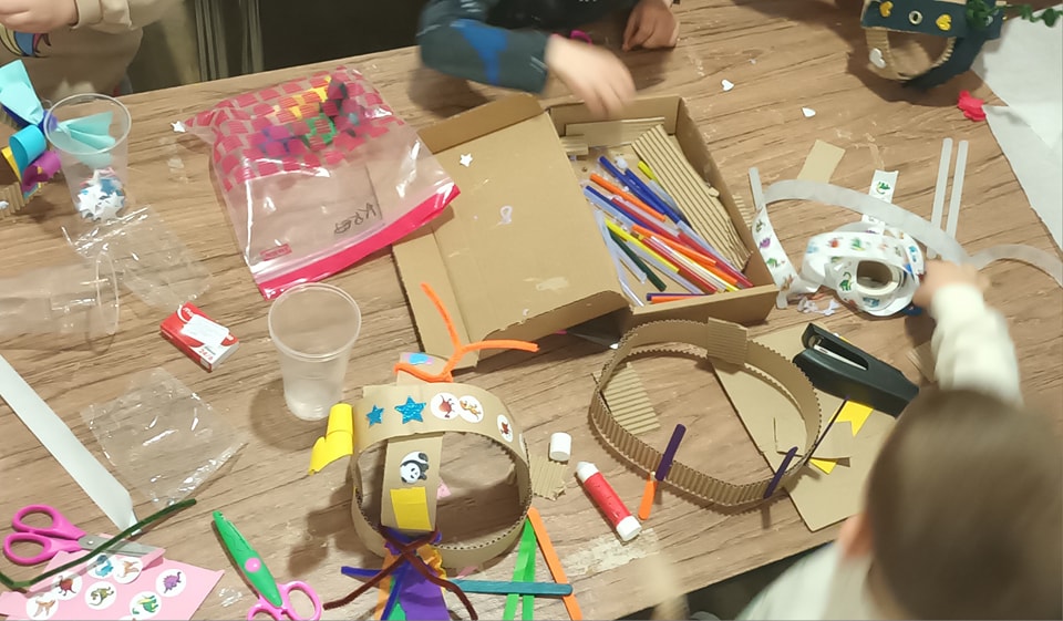 Tete pričalice, Martina i Irma, najprije su ispričale priču zanimljivog naslova “Moraš donijeti šešir”, a nakon toga su svi prisutni na radionici izradili različite šešire.