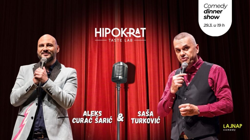 Hipokrat Taste Lab pripremio je ekskluzivne večere koje uključuju ne samo ukusnu hranu, već i nastup dva vrhunska komičara iz popularne Lajnap Comedy grupe – Aleksa Curaća Šarića i Sašu Turkovića. Doživite savršen spoj stand-up komedije i gurmanskih užitaka u jednom od najpoznatijih restorana u Mariji Bistrici.