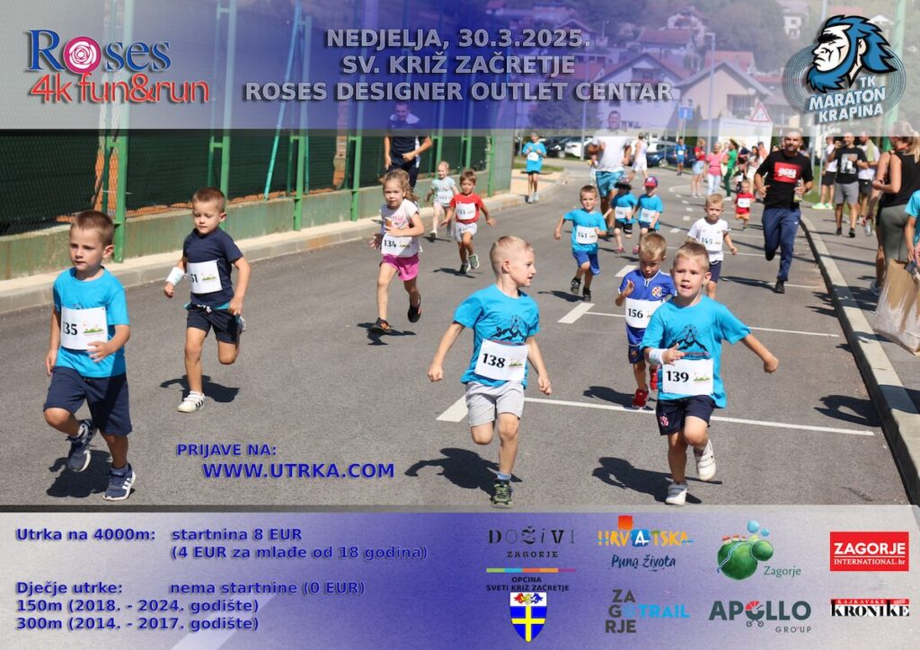 Iz TK-a ‘Maraton’ pozivaju vas da krenete u sezonu trčanja na predivnoj kružnoj stazi Roses Outlet Centra. Nakon utrke čeka vas proglašenje najboljih i druženje svih sudionika. Medijski pokrovitelji utrke su Zagorje International i Kajkavske kronike.