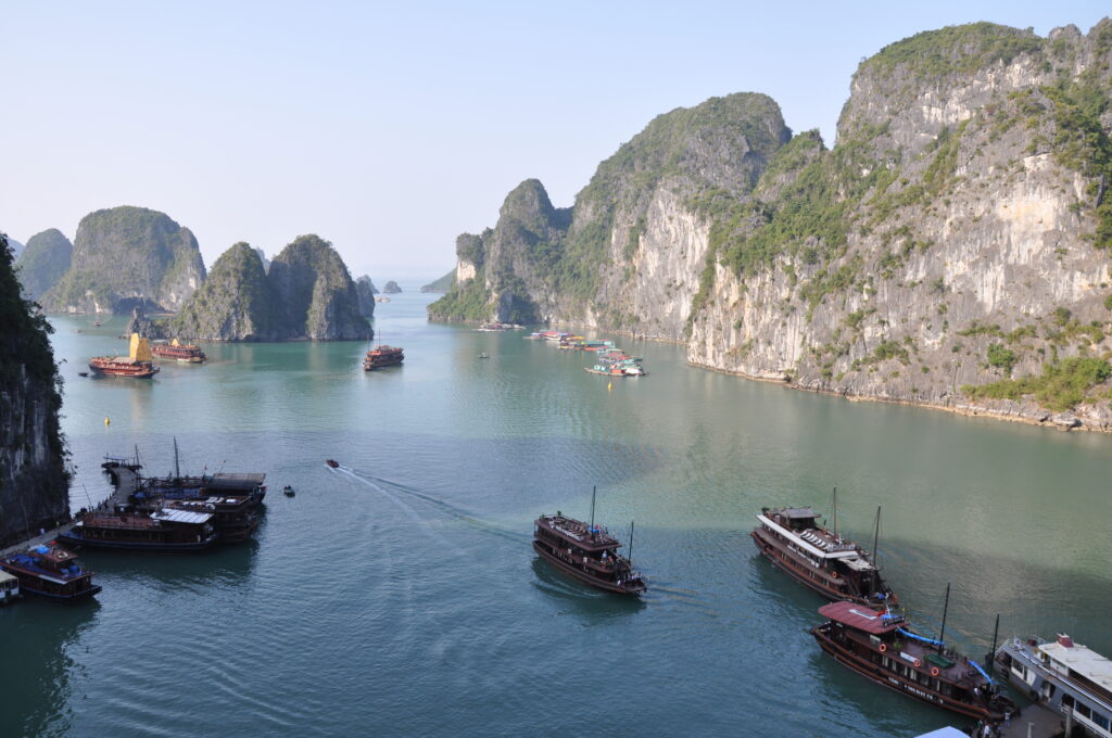 Zaljev Ha Long, remek djelo je božjeg stvaranja i prirode. To je ljepota od koje ti zastane dah. Tisuće vapnenačkih otoka, hridi i stijena, nenastanjenih, prava su atrakcija za turiste. Kažu da ovih otočića i otoka u Ha Longu ima 3000, no u turističkim prospektima se navodi da ih je 2000. Vijetnamci ističu da ih je točno 1969., a to je godina Ho Chi Minove smrti. Plovimo na povećoj džunki, turista je puno, divimo se ljepotama Božjeg stvaranja. Posada džunke pripremila nam je bogati ručak od morskih plodova uz obavezno vijetnamsko pivo. Pristali smo na otok na kojem se nalazi špilja Hang Đao Go i krećemo u njeno razgledavanje. Vraćamo se u zaljev i ukrcavamo ponovno na našu džunku. Oko džunke je nekoliko čamaca u kojima su prodavačice koje nude voće i povrće. Žene su male, mršave, ali vješto (i snažno) veslaju. U zaljevu se nalaze četiri naselja na vodi, s 1600 stanovnika koji žive od ulova morskih plodova i životinja. Plovimo prema hotelu, snimamo, ležimo na palubi na drvenim ležaljkama, dan je prekrasan. Boja mora je smaragdna. Zaustavljamo se u Hai Pongu, razgledavamo hram Du hang i pagodu Hang Kehn. Poslijepodne odlazimo u vrlo jeftini “šoping“ po Hanoju.