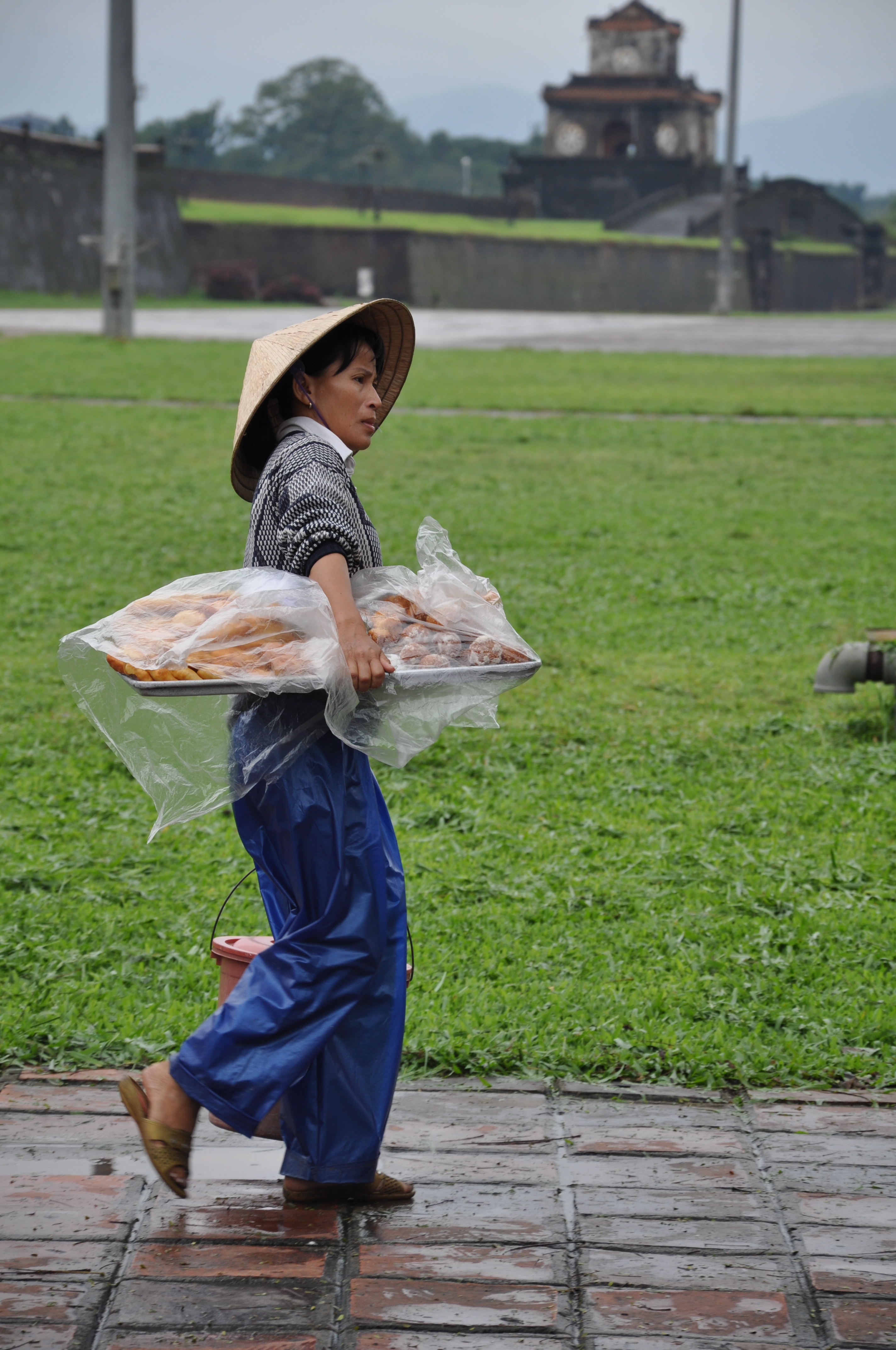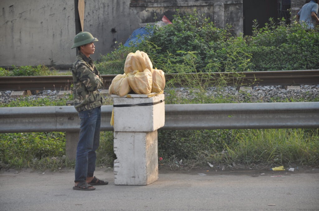 Uz sve to, po ulicama je mnoštvo prodavača voća i povrća koji na posebnim drvenim polugama na ramenima nose voće i povrće. Kad sam zamolio jednu mršavu staricu, prodavačicu, da se snimimo zajedno, uzeo sam njen teret na svoja ramena i nemalo sam se iznenadio koliko je to teško, i zapitao se kako to ova žena može cijeli dan nositi na svojim mršavim ramenima. Vlada krivo mišljenje da Vijetnamci nose marame – maske zbog ptičje gripe. Oni to čine zbog velike zagađenosti od ispušnih plinova.