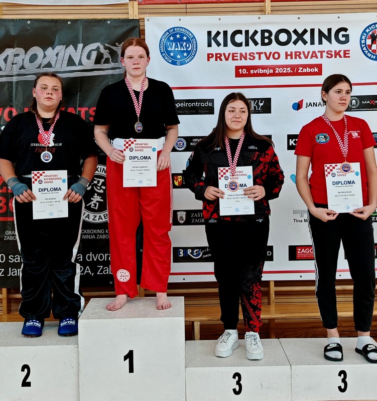 1. mjesto Petra Dumbović… u polufinalu se borila s Fabijančić Paola iz Fighter Buzet i pobijedila s 3:0, u finalu je nadmašila Baskin Teu iz Fighter Buzeta s 3:0. Ovo je Petrina prva titula državne prvakinje.