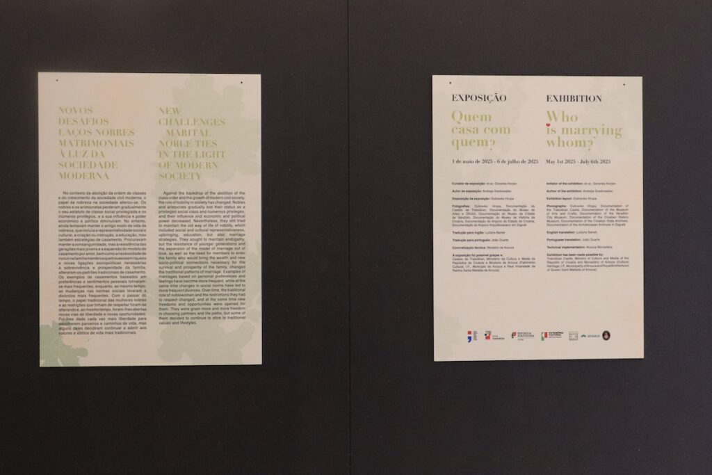 Premda se nalaze na različitim krajevima Europe, samostan Arouca i dvorac Trakošćan dijele zajedničku povijesnu i kulturnu baštinu – život plemstva, ulogu žena unutar obitelji i religije te značaj brakova za plemićki sloj. U Arouci su stoljećima živjele žene, pripadnice visokog plemstva koje su često bile poslane u samostan kao dio obiteljskih planova, što je direktno povezano s temom izložbe. S druge strane, dvorac Trakošćan bio je dom obitelji Drašković, čija je povijest, uključujući brakove, saveze i političke odnose, dio složenih društvenih dinamika europske elite. Izložba se tako tematski i simbolički uklapa u povijesni kontekst obje institucije – prikazuje ulogu žena, važnost bračnih strategija i kulturne vrijednosti koje su oblikovale povijest i Hrvatske i Portugala.