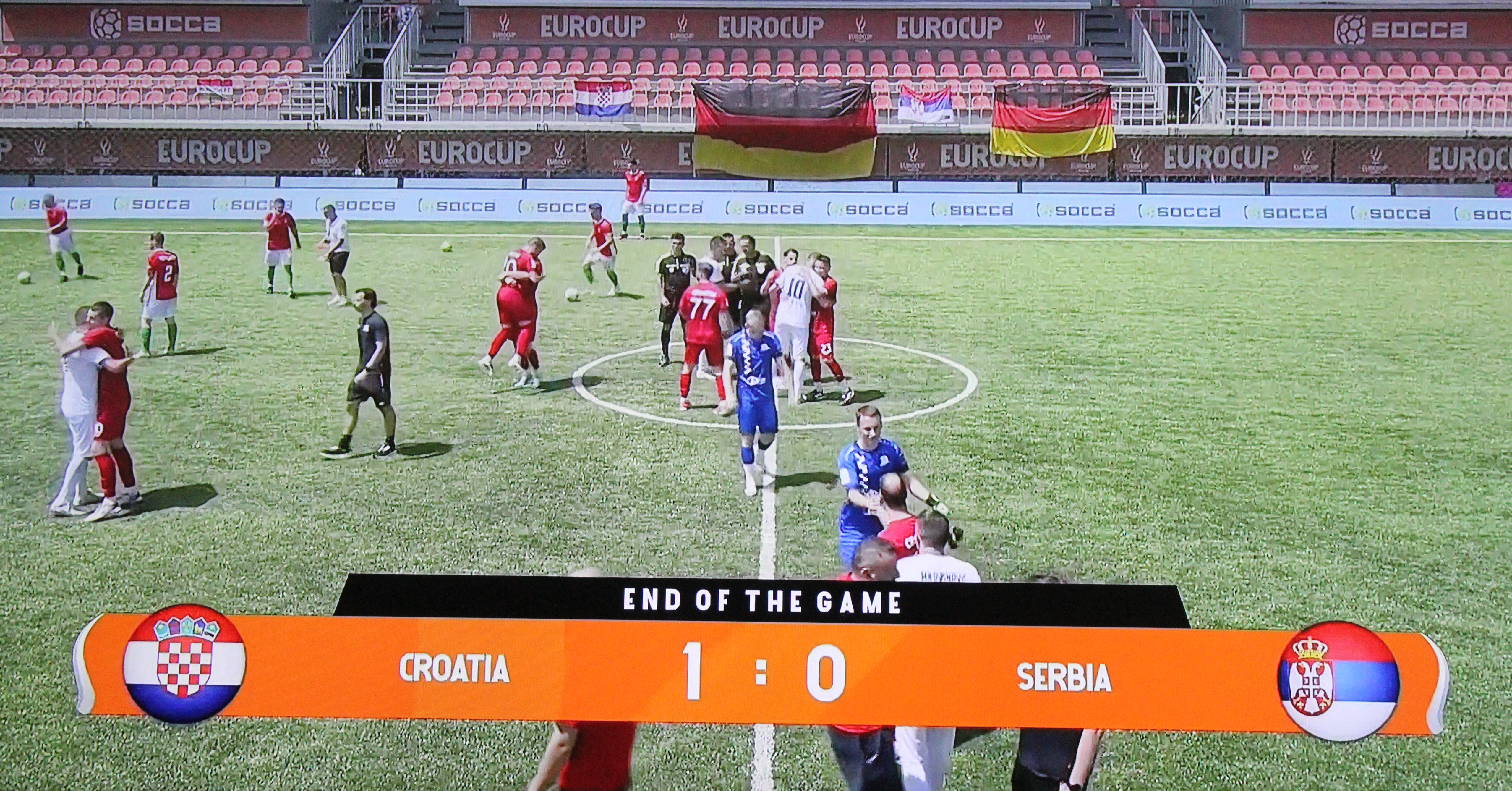 Nakon što je uvjerljivo osvojila prvo mjesto u svojoj skupini na Europskom socca prvenstvu hrvatska reprezentacija ušla je u osminu finala gdje ju je čekala reprezentacija Srbije, trećeplasirana ekipa skupine C koju je pobijedila 1:0 golom Kovačevića u 39. minuti susreta i plasirala se u četvrtzavršnicu.