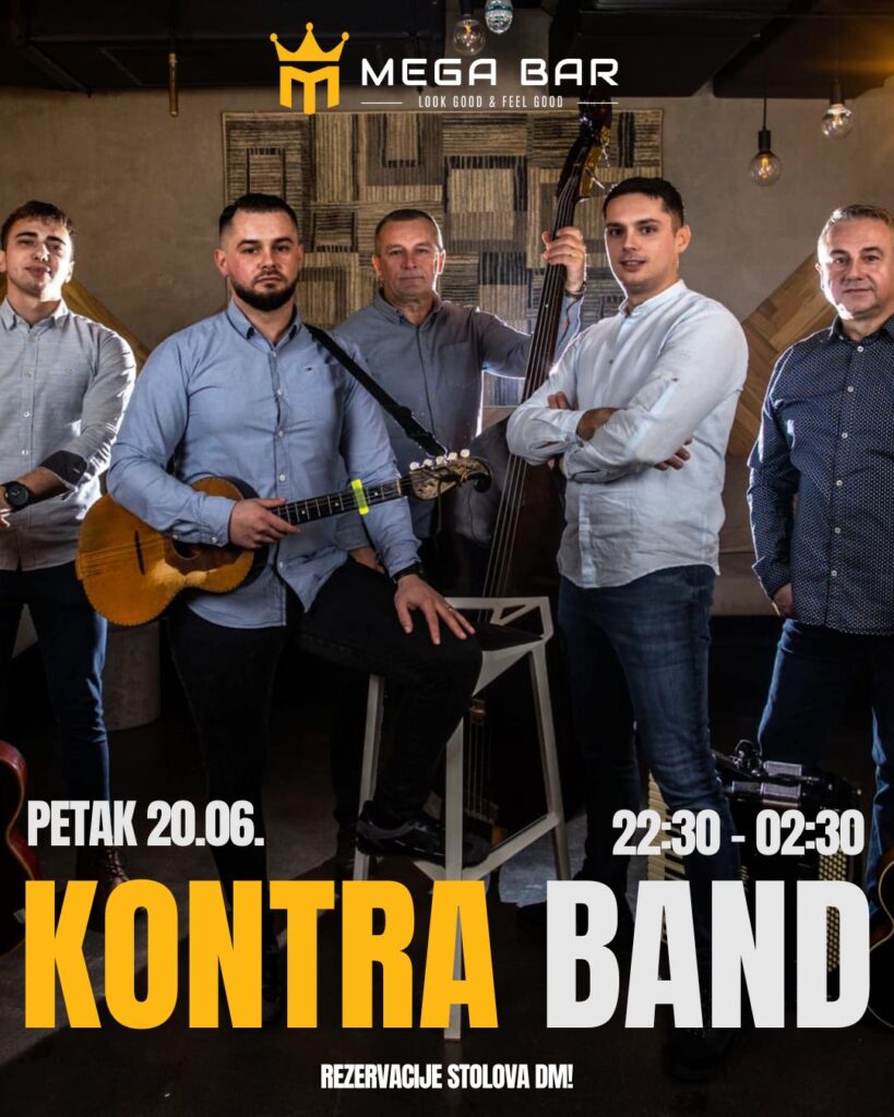 Ovog petka u Mega bar stižu svima poznati – dečki iz Kontra benda. Nema boljeg načina za provesti produženi vikend uz dobro društvo i glazbu, stoga svi u Megu.