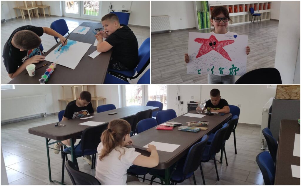 Nakon što je svako dijete pročitalo zanimljivosti o morskoj životinji, njihov je zadatak bio nacrtati dobivenu životinju onako kako ju oni zamišljaju te su nastali vrlo kreativni i zanimljivi radovi. Nakon provedene aktivnosti, uslijedilo je zajedničko druženje uz društvene igre na otvorenom te su djeca uživala u grickalicama i sokovima. Na ovoj radionici djeca su imala priliku naučiti nove i zanimljive stvari o morskim životinjama te ih se poticalo da kroz maštu i kreativnost izraze kako oni vide život morskih životinja. Radionicu je kao i svake subote vodila Magdalena Mudri.