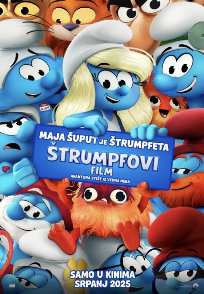 Najprije će se u 19 sati prikazivati obiteljski film ‘Štrumpfovi’. U potpuno novom animiranom hit-filmu legendarni Štrumpfovi vraćaju se na velika platna spremniji, plaviji i zabavniji no ikada prije! U originalnoj verziji filma vokalnu čaroliju šarmantnoj Štrumpfeti donosi nitko drugi doli globalna pop-senzacija Rihanna, a ništa manje impresivna nije ni Maja Šuput u hrvatskoj sinkronizaciji. Ovo štrumpfastično putovanje prošarano je obiljem zaraznih pjesama i dinamičnih plesnih točaka, u kojima će cijelo selo Štrumpfova pokazati pravo značenje zajedništva, optimizma i vjere u uspjeh. Kroz neočekivane preokrete i komične situacije, ova družina dokazuje da se i najveće prepreke mogu svladati uz malo magije, dobre volje i velikog plavog srca. Savršeni spoj humora, sjajne glazbe i fantastične animacije čini ovaj film pravom poslasticom za gledatelje svih generacija.