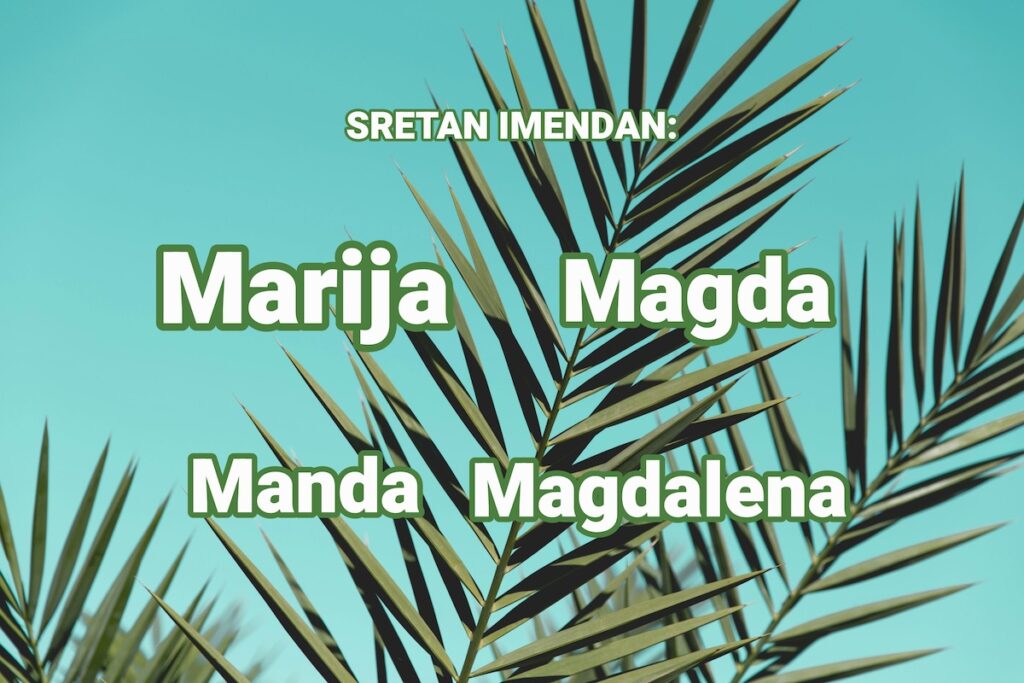 Prema katoličkom kalendaru danas, 22. srpnja, imendan slave Marija, Magdalena, Magda i Manda.