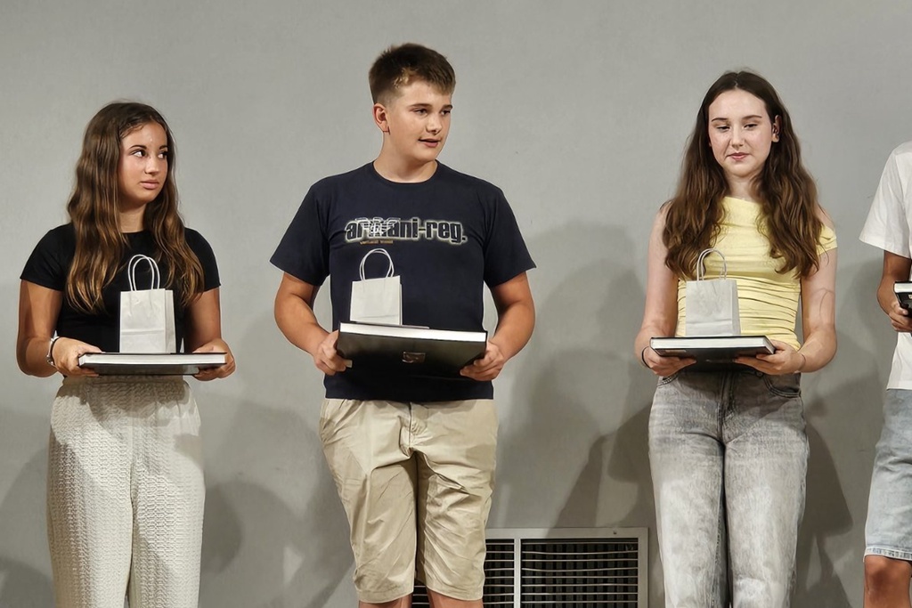 Među njima su i dva odlikaša koji su svih osam razreda završili s prosjekom 5,0, a to su Josip Hopek i Gabrijela Ozimec koji su od Općine uz knjigu i privjesak dobili 200 eura, dok su ostali dobili knjigu i privjesak. Simboličan poklon u znak zahvale dobile su i njihove razrednice.