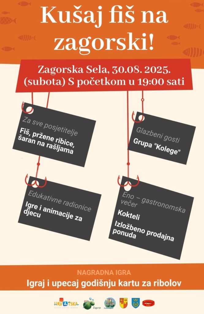 Za glazbeni ugođaj pobrinut će se tamburaški sastav Missters, dok će u nagradnoj igri najsretniji posjetitelji moći osvojiti godišnje ribolovne karte. Stoga, u subotu svi u Zagorska Sela!