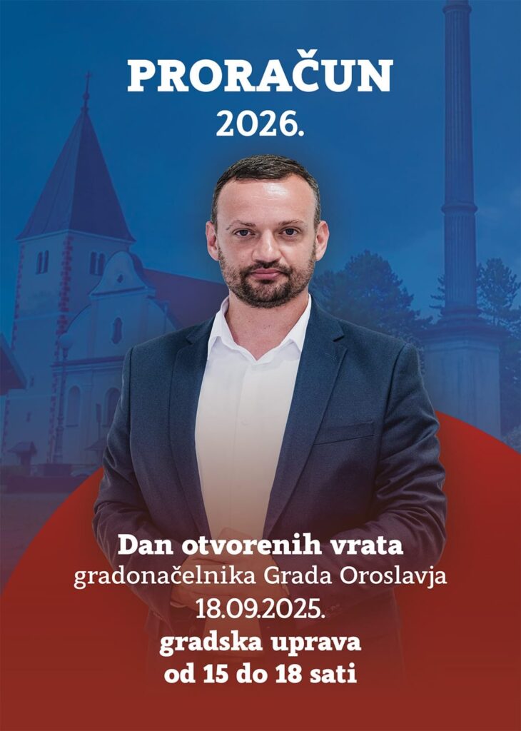 Kao i svake godine, Grad Oroslavje organizira Dan otvorenih vrata kako bi svi građani mogli dati svoje prijedloge za proračun Grada za 2026. godinu, 18. rujna u Gradskoj upravi od 15 do 18 sati.