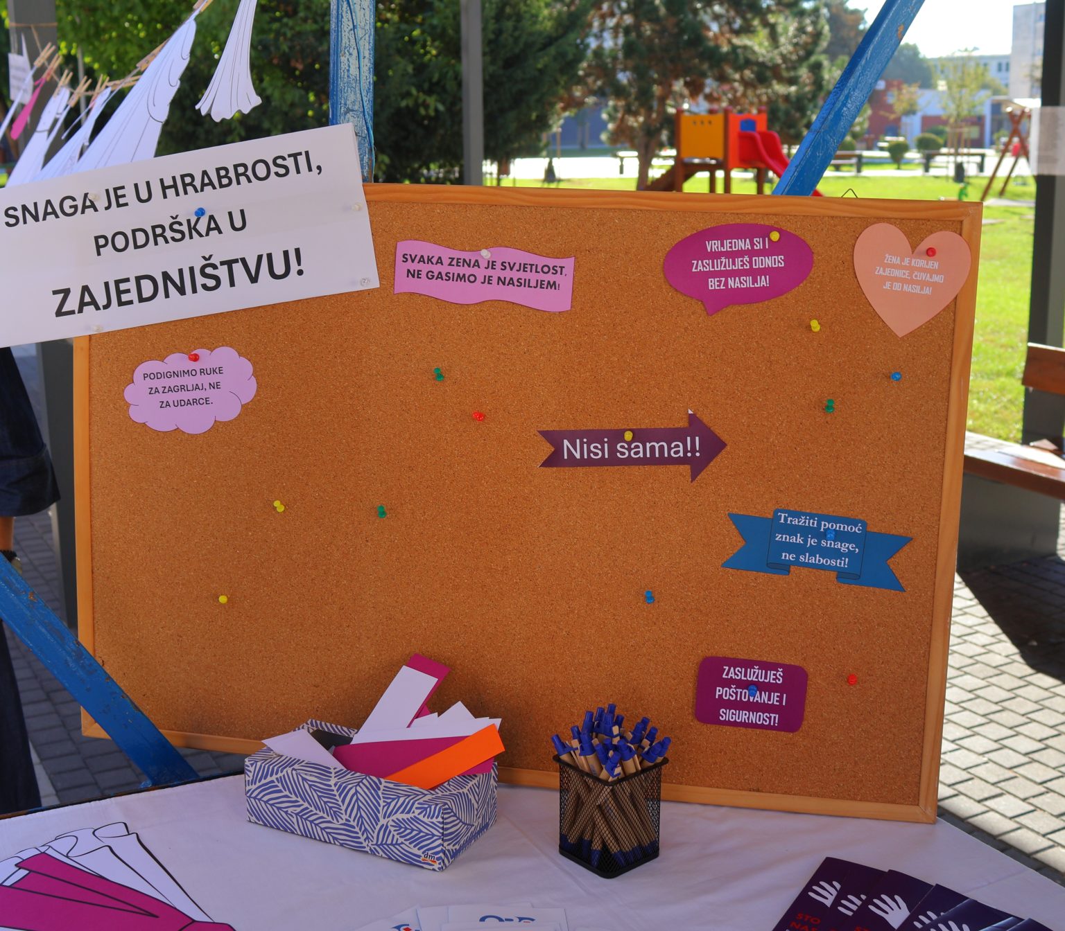 Akciji se pridružila i predsjednica Povjerenstva za ravnopravnost spolova Međimurske županije Marija Prekupec te učenici Osnovne škole Orehovica koji su u sklopu predmeta Građanski odgoj i obrazovanje na prigodnom štandu u Čakovcu učili o važnosti prevencije i edukacije te poslali i osobnu poruku osude nasilja.