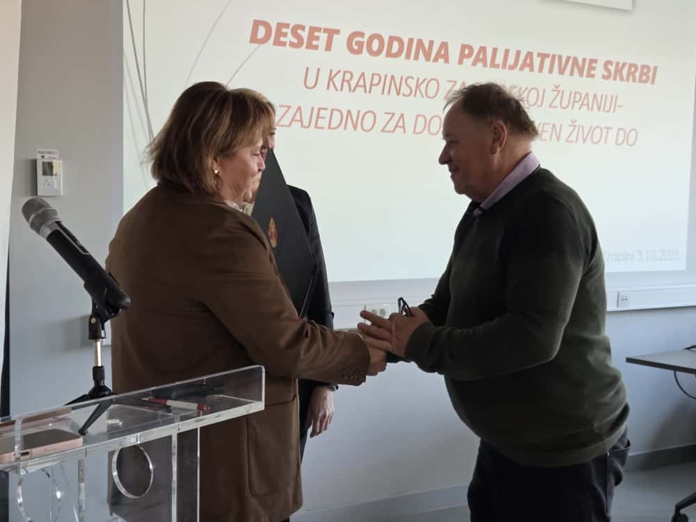 – Poseban dio primarne zdravstvene zaštite čini palijativna skrb – ona je izrazito kompleksna jer obuhvaća i pacijente i njihove obitelji. Ponosna sam što sam imala priliku biti dijelom procesa izgradnje palijative u našoj županiji – rekla je Petek te dodijelila županijsku zahvalnicu Domu zdravlja KZŽ povodom 10 godina predanog rada na očuvanju kvalitete života pacijenata u najtežim trenucima.