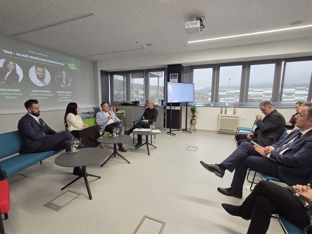 Goran Romac iz Hrvatskog registra obveza po kreditima (HROK) predstavio je ESG platformu razvijenu u suradnji s bankama. Riječ je o digitalnom alatu koji omogućuje jednostavno prikupljanje i razmjenu podataka o održivosti poslovanja, što znatno olakšava procjenu rizika i uvjeta kreditiranja.
