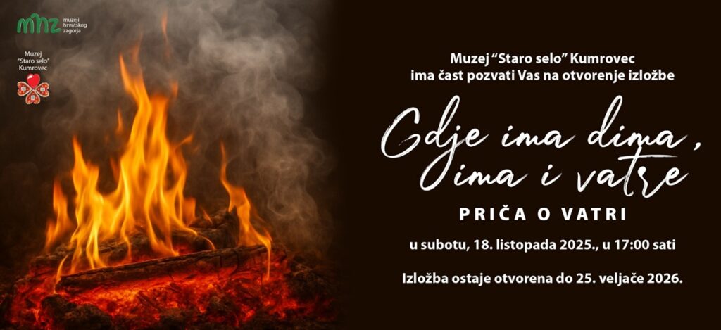 Muzej ‘Staro selo’ Kumrovec poziva vas na otvorenje nove tematske izložbe ‘Gdje ima dima, ima i vatre: Priča o vatri’, koja će se održati u subotu, 18. listopada u 17 sati.