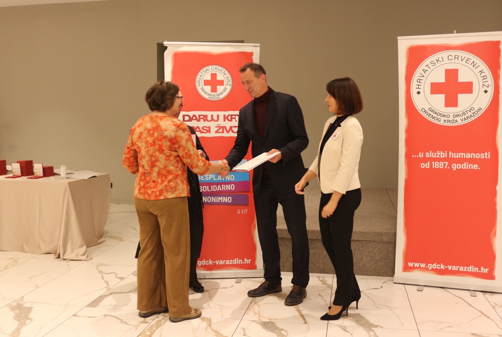 Gradsko društvo Crvenog križa Varaždin u petak je svečanom podjelom zahvalnica višestrukim darivateljima krvi obilježilo Dan dobrovoljnih davatelja krvi (25. listopada). Prilika je to da se višestrukim darivateljima krvi zahvali na dugogodišnjem darivanju krvi i promicanju darivanja krvi u gradu Varaždinu i Varaždinskoj županiji. Zahvalnice im je uručio gradonačelnik Grada Varaždina dr. sc. Neven Bosilj, uz predsjednicu GDCK Varaždin Branku Rodek i ravnateljicu GDCK Varaždin Sandru Mintas.