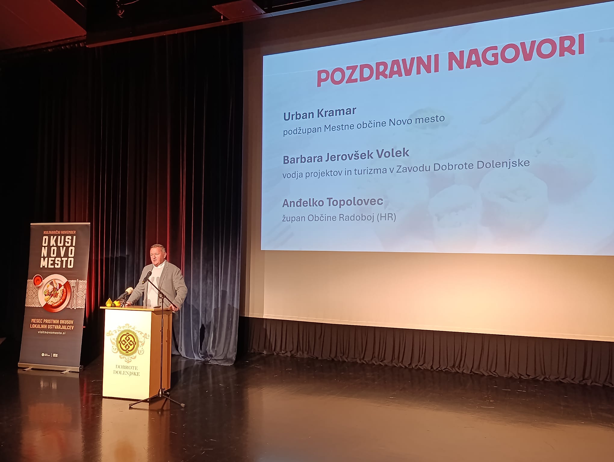 Pozdravne govore održali su podžupan Mestne občine Novo Mesto Urban Kramar, voditeljica projekata u turizmu iz Zavoda Dobrote Dolenjske Barbara Jerovšek Volek, te načelnik Radoboja Anđelko Topolovec.