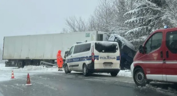 Na autocesti A6 kod karlovačkog Novigrada došlo je do slijetanja kamiona s ceste, ali srećom u prometnoj nesreći nema ozlijeđenih. Čitatelj portala 24sata govori kako su uvjeti za vožnju teški zbog količine snijega na cesti.