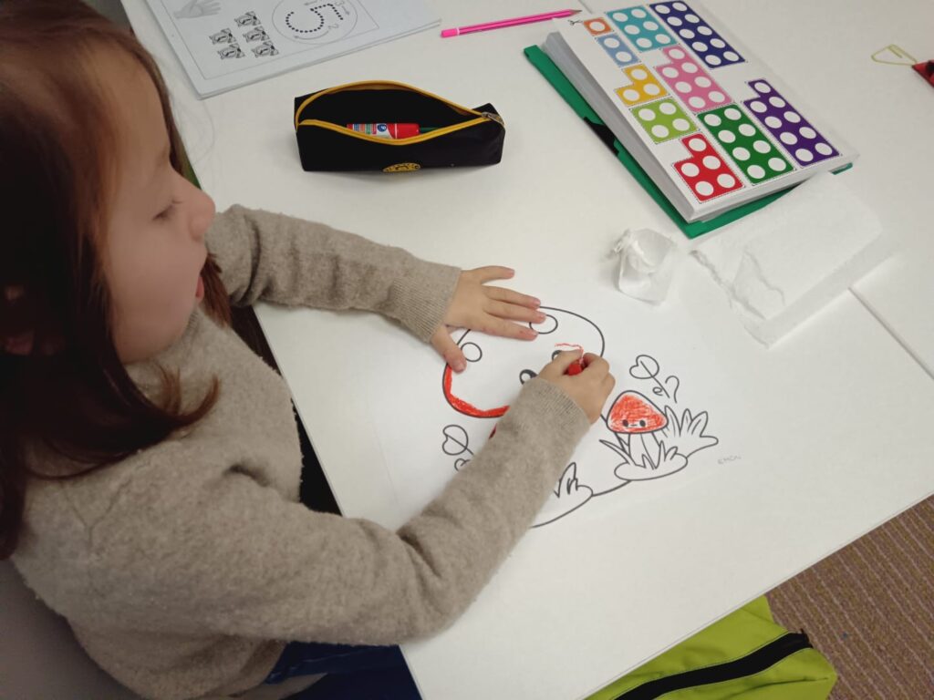 Slova i razvijanje vještine izražavanja program posebnu pozornost posvećuje razvoju vještine govora i slušanja, čitanja, upoznavanja sa slovima i grafomotoričkim sposobnostima. Takav pristup potiče djecu da razvijaju ljubav prema čitanju i pisanju.