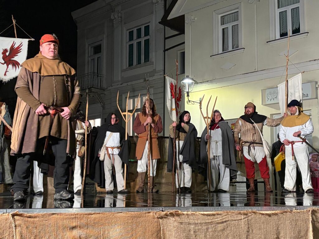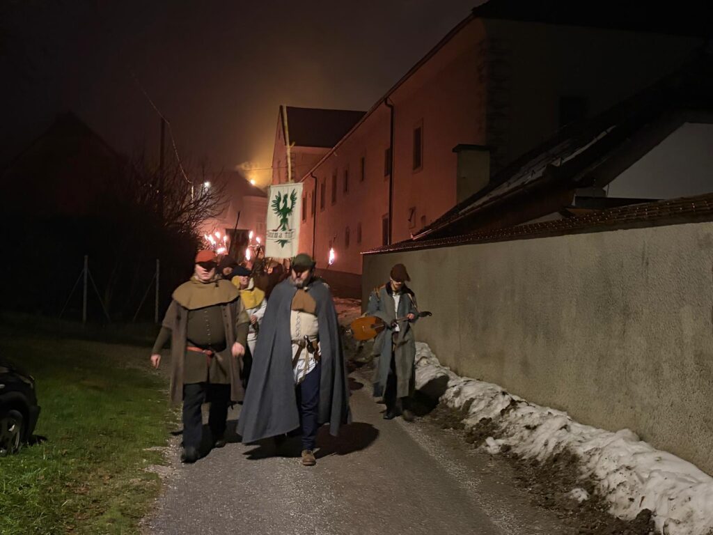 – Ova manifestacija nije samo šetnja s bakljama nego i povratak u prošlost. Baš tu prije više od 450 godina počela je Seljačka buna kad su se kmetovi digli u noći s 27. na 28. siječnja 1573. i krenuli na Cesargrad. Kako bi rekli naši stari, tu se povijest zakuhala. Hodali smo i mi večeras po šumi, ali malo i po prošlosti i to zahvaljujući našoj sjajnoj Družbi vitezova Zlatnog kaleža – izjavila je Horvatin te pozvala sve prisutne da pogledaju izložbu ‘Seljačka buna’ klanječke Likovne udruge – Oton Iveković.