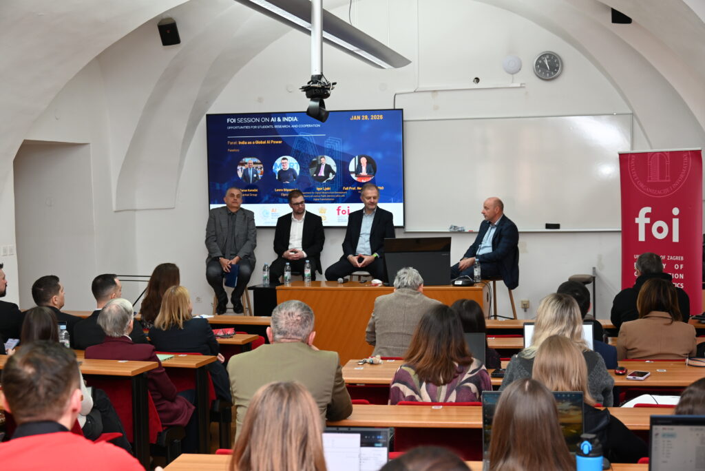 Na FOI-ju u Varaždinu održana je tematska sesija na temu ”Umjetna inteligencija i Indija: prilike za studente, istraživanje i suradnju“, a zajednički su ju organizirali Veleposlanstvo Indije u Republici Hrvatskoj i Sveučilište u Zagrebu Fakultet organizacije i informatike.