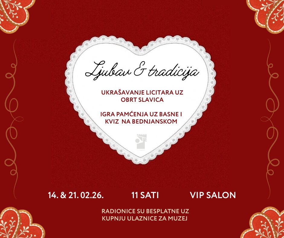 Najprije će se 14. veljače u 11 sati održati ‘Valentinovo – radionica ukrašavanja licitara’. Radionicu vodi Valentina Gladović Nedić – Obrt ‘Slavica’, a sudjelovanje je besplatno uz kupljenu ulaznicu za muzej. Radionica se održava u VIP salonu dvorca.