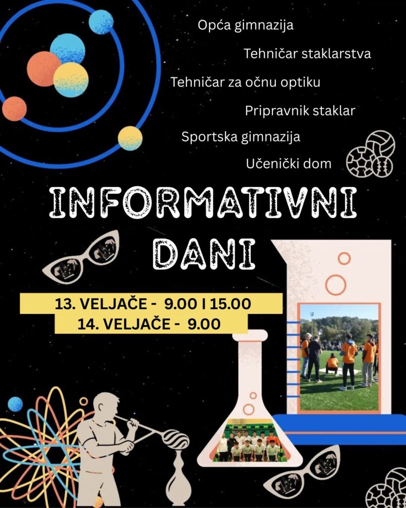 – Razumijemo da je odabir srednje škole jedna od najtežih odluka u životu obitelji. Dobro poznavanje obrazovnih programa i aktivnosti koje nude naše škole može vam uvelike olakšati odluku. Ove školske godine informativni dani održat će se u petak, 13. veljače 2026. (u 9 i 15 sati) i subotu, 14. veljače 2026. (u 9 sati). Pripremamo zanimljive prezentacije škole i programa koje provodimo, demonstracijske satove, tijek praktične nastave u optičkoj i staklarskoj radionici, a moći ćete se upoznati i razgovarati s našim učenicima i nastavnicima. Pozivamo vas da saznate više o tome zašto je ŠCRS škola za njih, smijeh i snove! – kažu iz Školskog centra.