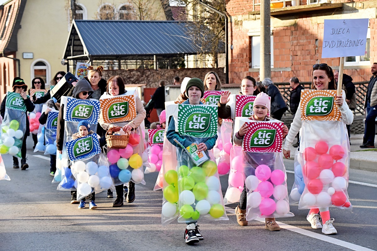 Vesela maskirana povorka krenula je od Društvenog doma u Družbincu do Osnovne škole Petrijanec, a sve su pratili brojni mještani koji su maškare čekali ispred svojih kuća te ih veselo pozdravljali. Nakon povorke, održano je predstavljanje maskiranih grupa, a potom je vesela i šarena ekipa okupirala sportsku dvoranu Osnovne škole Petrijanec gdje je održana zabava pod maskama uz band “Umjetna inteligencija”.