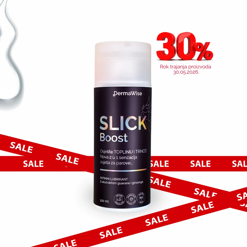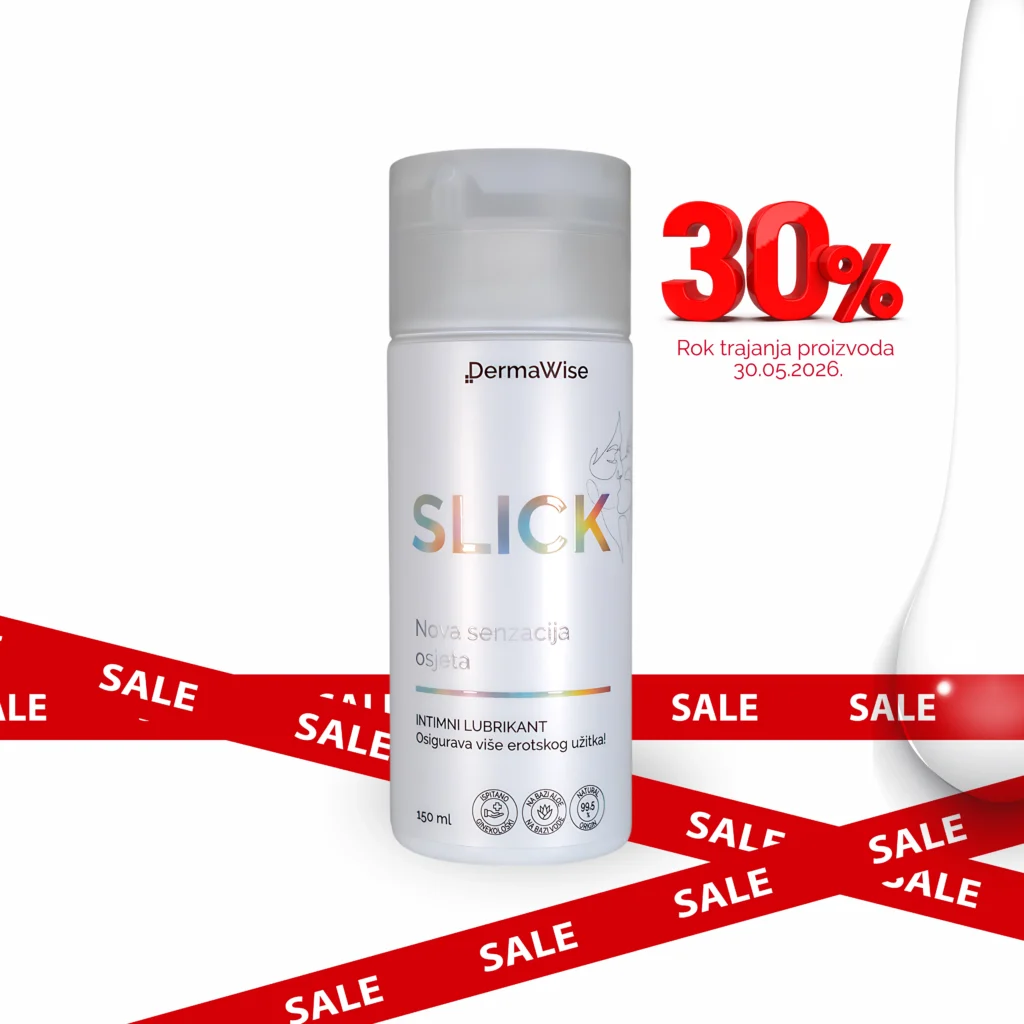 Tu diskretno dolazi DermaWise SLICK – naš hrvatski lubrikant premium kvalitete s početka priče, koji ne preuzima glavnu ulogu, nego radi baš ono što treba: vlaži, kliže, pojačava osjete i povećava gušt.