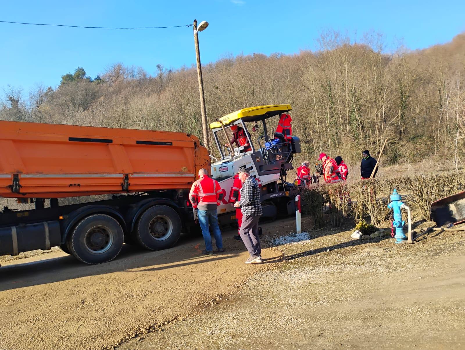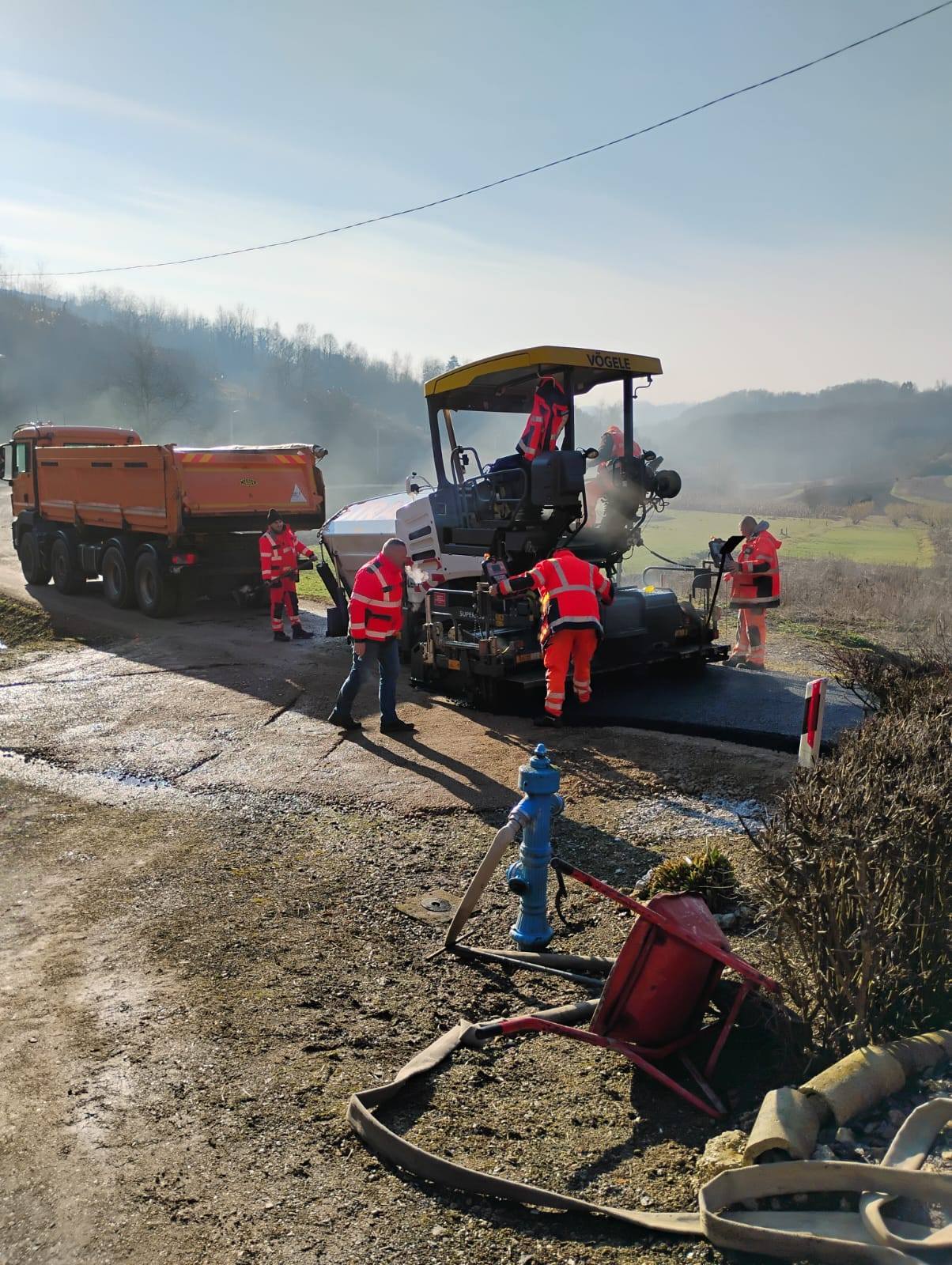 Na radnost mještana, asfaltiranje je započelo s dionicom Vojnić Breg – Tenšeki kamenolom, u duljini 1010 metara, a radove je obišao i načelnik Željko Odak.