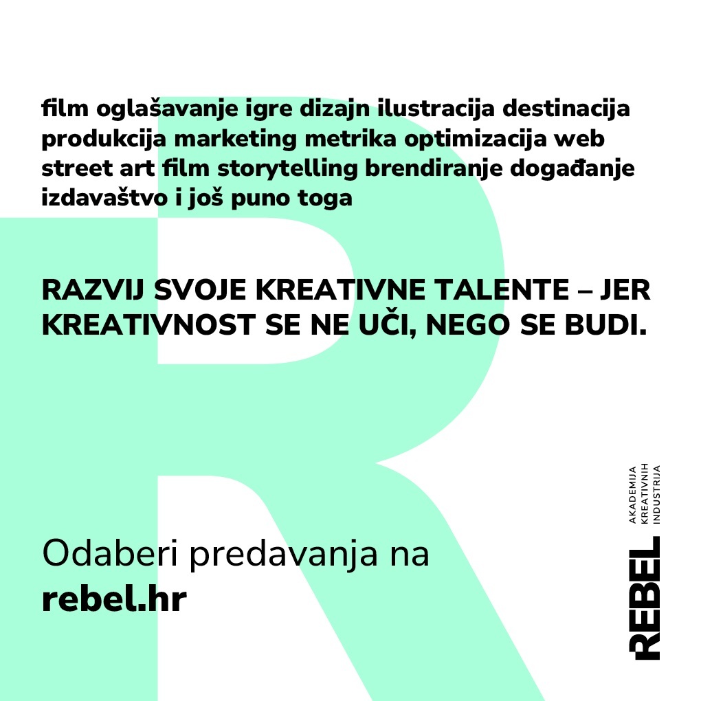 – Potražite nas na rebel.hr, a imamo i LI i FB profile ‘Rebel Academy of Creative Industries’. Za lokalne biznise, možete poslati svoje ljude na edukaciju, a možete i angažirati ciljani tim za usluge koje vam trebaju. Otvoreni smo i za sponzorstva i donacije, čime možemo dovesti željena predavanja i radionice na vašu adresu – poručuju iz ‘Rebel Akademije’.