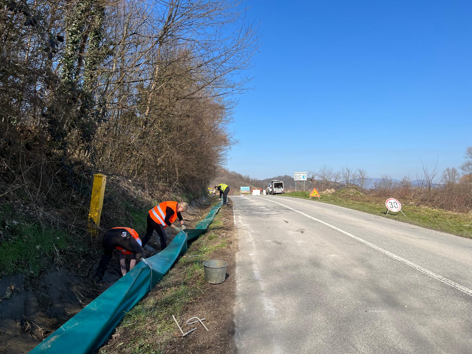 Uz rub ceste je 27. veljače postavljena mobilna ograda dužine 350 metara, koja sprečava prelazak žaba preko ceste i usmjerava ih prema ispustu ispod ceste tako da one sigurno stignu do obližnjeg jezera te prema kantama koje su ukopane u zemlju. Postavljen je i jumbo plakat “Pazi žaba” da se još više pozornosti ukaže na problem stradavanja žaba na prometnicama, a na toj lokaciji je postavljen i trajni prometni znak “Žabe na cesti” u suradnji s Županijskom upravom za ceste.