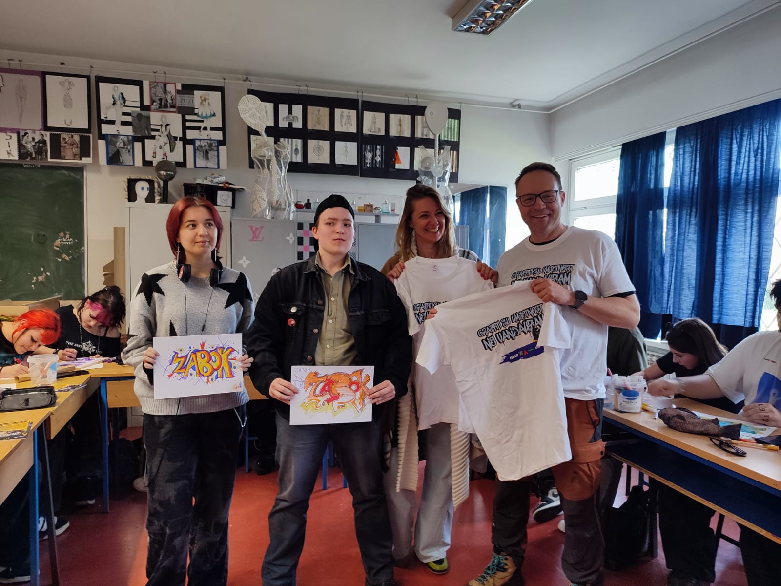 Dok zidovi naših gradova prečesto služe kao nijemi svjedoci netolerancije, učenici 3. i 4. razreda dizajna Škole za umjetnost, dizajn, grafiku i odjeću Zabok odlučili su ispisati drugačiju priču. Zabočki kreativci su na jedan dan postali bedem protiv vandalizma pod geslom “Zajedno protiv govora mržnje”. Edukativno-kreativna radionica “Graffiti su umjetnost, a ne vandalizam” pod vodstvom street art umjetnika Krešimira Golubića transformirala je buntovnu energiju u čistu umjetnost, dokazujući da sprej u pravoj ruci nije oružje za uništavanje, već alat za zajedništvo.