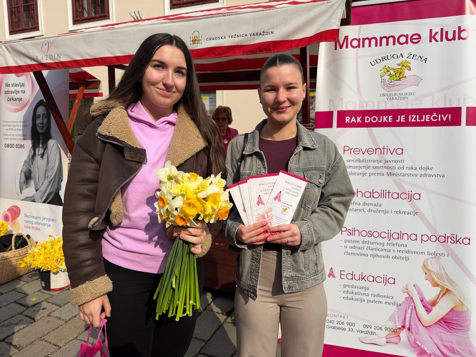 – Od raka dojke obolijeva sve više mladih žena i zbog toga naša udruga u ovakve akcije uključuje mlade volontere. I dok učenici osnovnih škola naše županije marljivo skupljaju narcise i doniraju ih Udruzi, u našim akcijama sudjeluju učenici Medicinske škole i studenti sestrinstva. Osim toga, provodimo program „Mama i ja” u sklopu kojeg držimo predavanja i radionice samopregleda dojke učenicima završnih razreda srednjih škola u Varaždinskoj županiji. Time ih potičemo da steknu naviku da brinu o svom zdravlju, a i da potiču svoje mame, bake, tete da se obavezno odazovu na preventivni mamografski pregled kada dobiju poziv – rekla je Slava Borko, predsjednica Mammae kluba.