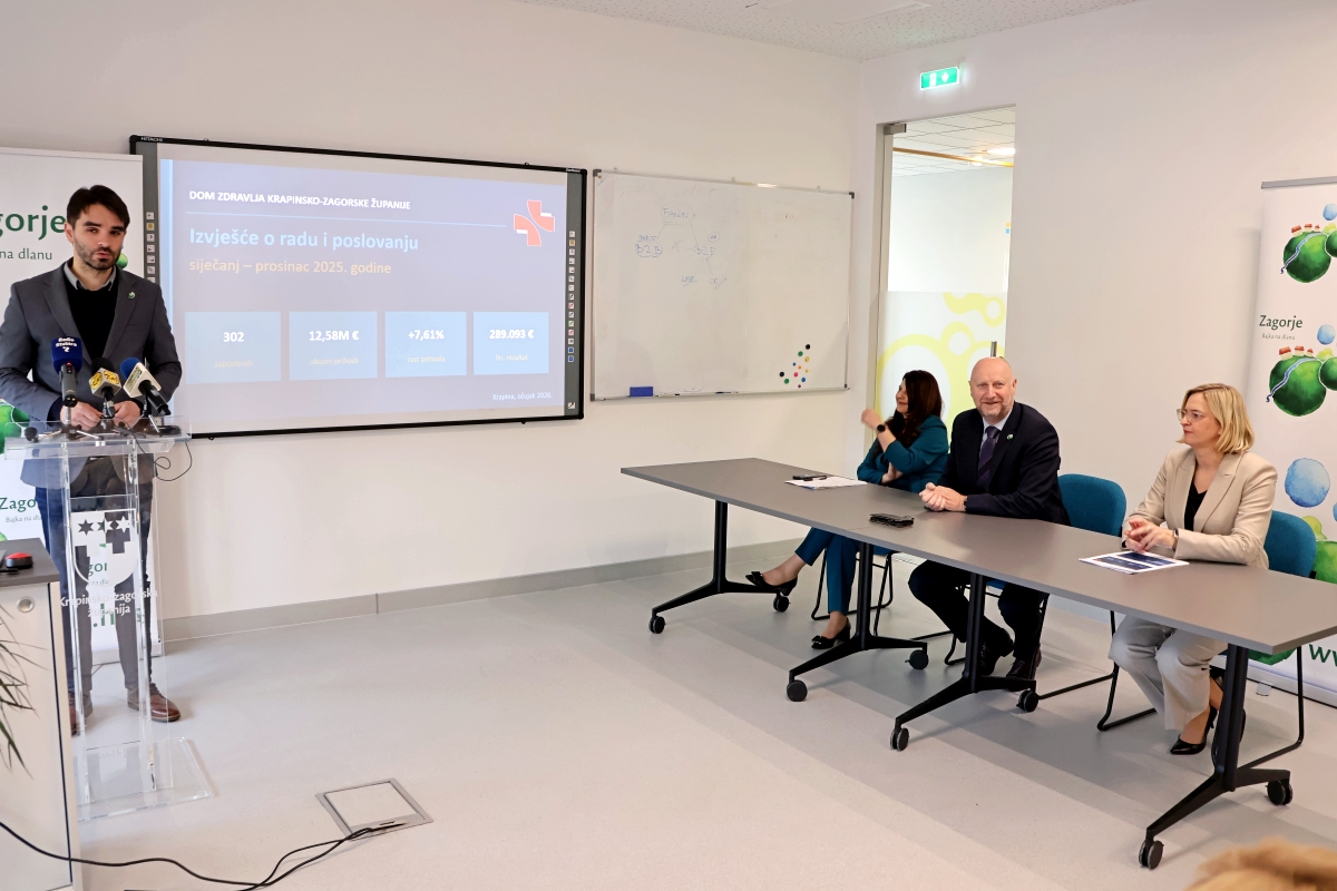 U Poslovno-tehnološkom inkubatoru u Krapini održana je konferencija za medije na kojoj su predstavljeni rezultati rada Doma zdravlja Krapinsko – zagorske županije za 2025. godinu. Naglasak je stavljen na rast broja pruženih usluga, stabilno financijsko poslovanje te ambiciozne planove razvoja zdravstvene zaštite u 2026. godini.