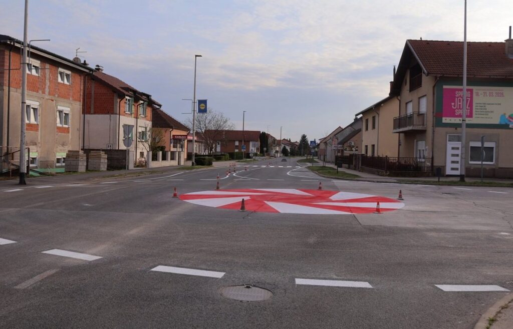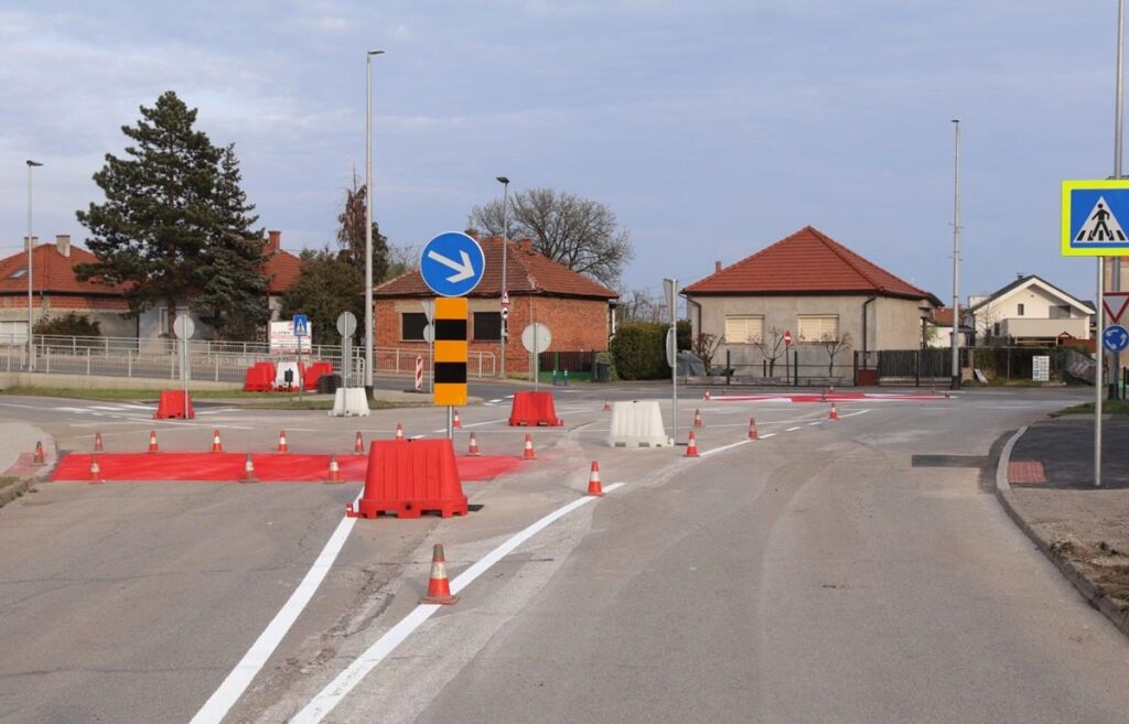 Prema projektu, na postojećim prometnim površinama uspostavljeno je privremeno montažno kružno raskrižje vanjskog radijusa 11 metara, koje je izvedeno iscrtavanjem prometnih linija i zaprečnih površina u bijeloj i crvenoj boji na postojećem asfaltu, dok su unutar kružnog raskrižja i njegovih prilaza postavljene privremene razdvajajuće ograde i odgovarajuća prometna signalizacija.
