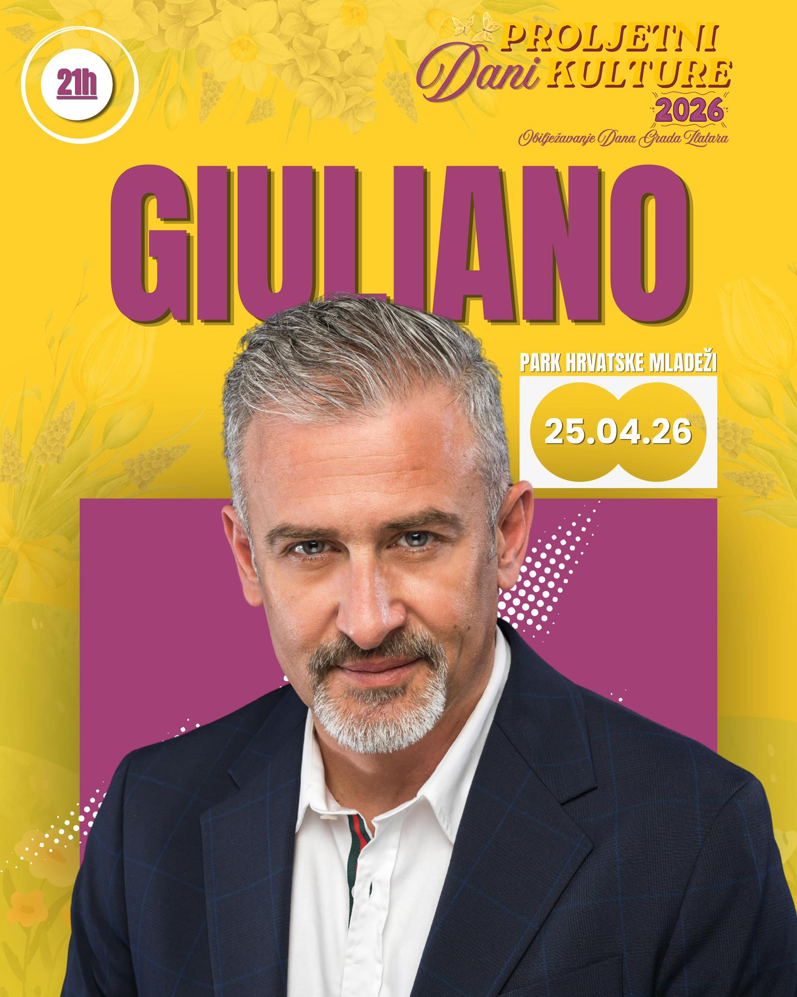 Vrhunac događanja bit će subota, 25. travnja, kada će se u Parku hrvatske mladeži održati koncertna večer – najprije u 19 sati nastupa Dominik Šušković, a potom će u 21 sat pjevati Giuliano!