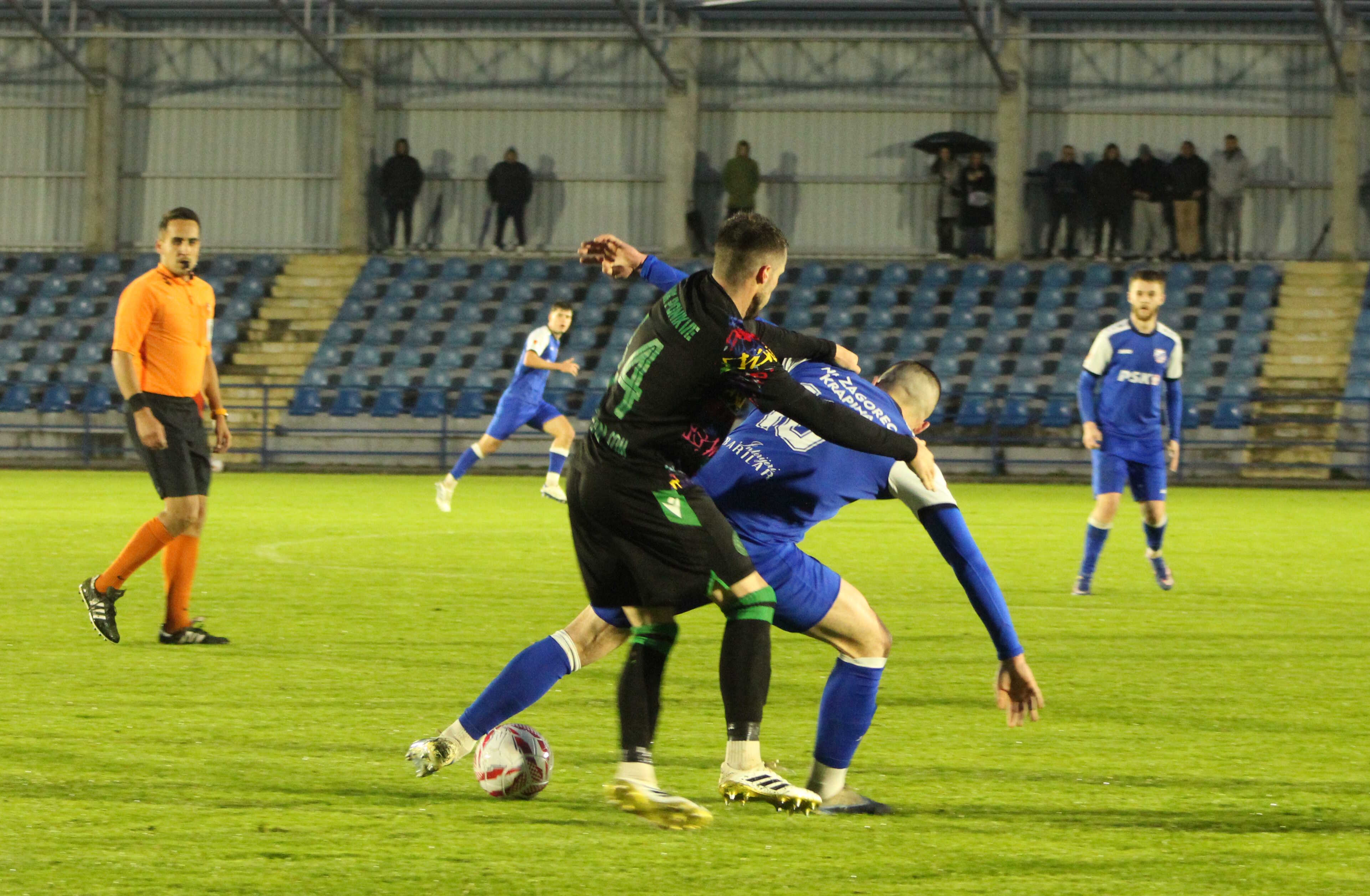 Ovaj izjednačujući pogodak kao da je „naljutio“ plave dečke iz Krapine te već minutu kasnije Krznar pogađa stativu nemoćnog gostujućeg golmana, no lopta se odbija u polje.