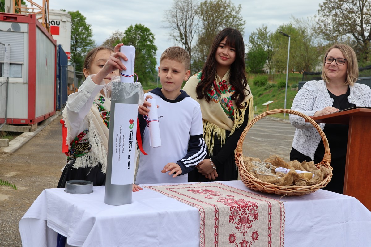 Na gradilištu nove sportske dvorane OŠ Sveti Martin na Muri položena je vremenska kapsula u kojoj suvremenici ostavljaju zapis o ulozi ovoga važnoga projekta u našem dobu. Radovi na gradnji novoga objekta teku planiranom dinamikom i za otprilike godinu dana učenici i ove škole imat će uvjete za obrazovanje 21. stoljeća. Školska dvorana je vrijedna 4.633.265 eura, od čega je projektnom aktivnošću Županije osigurano sufinanciranje od 2.749.985 eura iz europskih fondova putem Nacionalnog plana oporavka i otpornosti, a preostali dio financirat će Međimurska županija i Općina Sveti Martin na Muri.