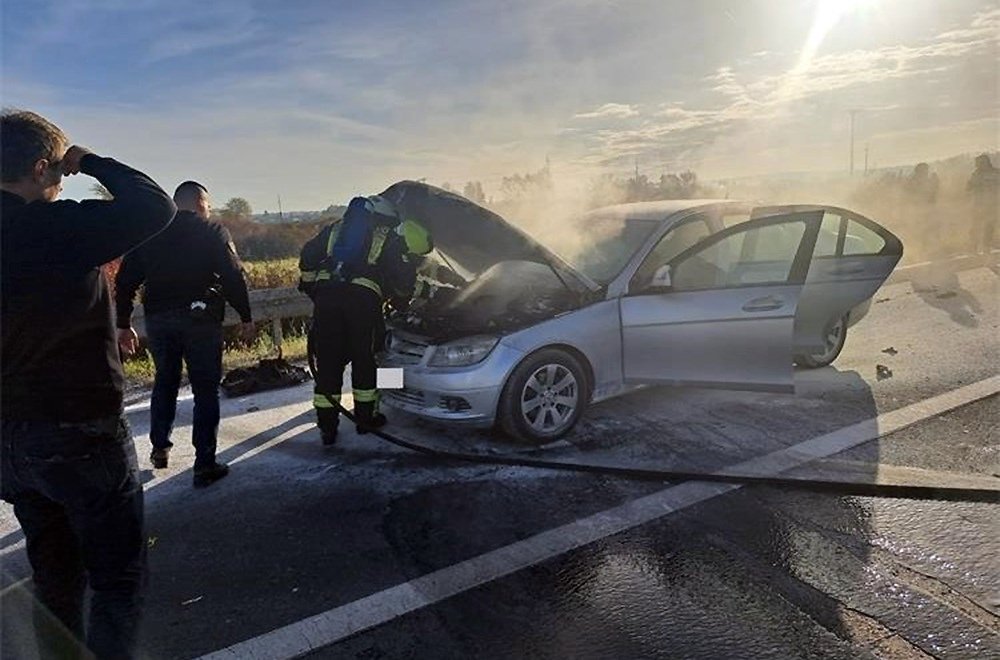 Jutros na autocesti A4FOTO: Vozač nije shvatio da mu se u vožnji zapalio auto – spasili su ga policajci!